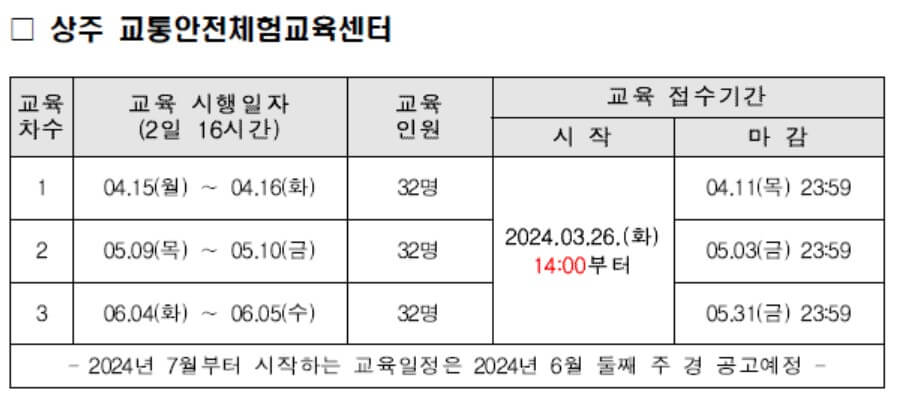 ● 상주교육센터 : 054-530-0100 경북 상주시 청리면 마공공단로 80-15 상주교통안전체험교육센터