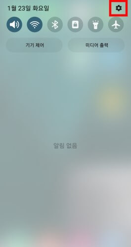 1. 휴대폰 상단을 아래로 터치해 톱니바퀴를 눌러 관리페이지로 들어갑니다.