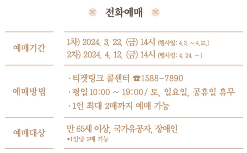 ● 예매기간 : 1차 3월 22일 / 2차 4월 12일 선착순 마감