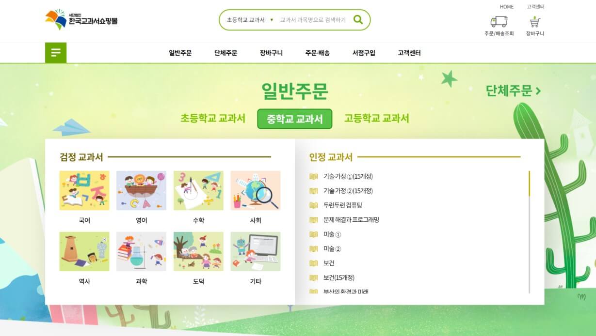 하지만 모든 책을 이 사이트에서 구입할 수 있는 것은 아닙니다. 대표적으로 미래엔 출판사의 교과서와 초등학교 국정 교과서 일부는 각 출판사 사이트에서 구입하실 수 있습니다.