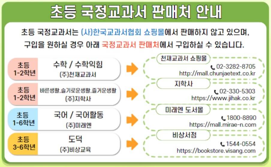 우리나라 초중고등학교에서 이용하고 있는 교과서는 한국교과서협회 쇼핑몰 사이트(www.ktbookmall.com)에서 구입할 수 있습니다.