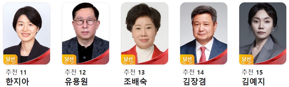 국민의미래 비례대표 당선자는 모두 18명입니다. 몇몇 독특한 이력의 후보도 보이는데요, 4번은 사격 금메달 리스트 진종오 선수이며, 8번은 인요한교수입니다. 또한 15번 김예지 후보는 2020년 입당해 21대 비례대표 국회의원을 지냈습니다.