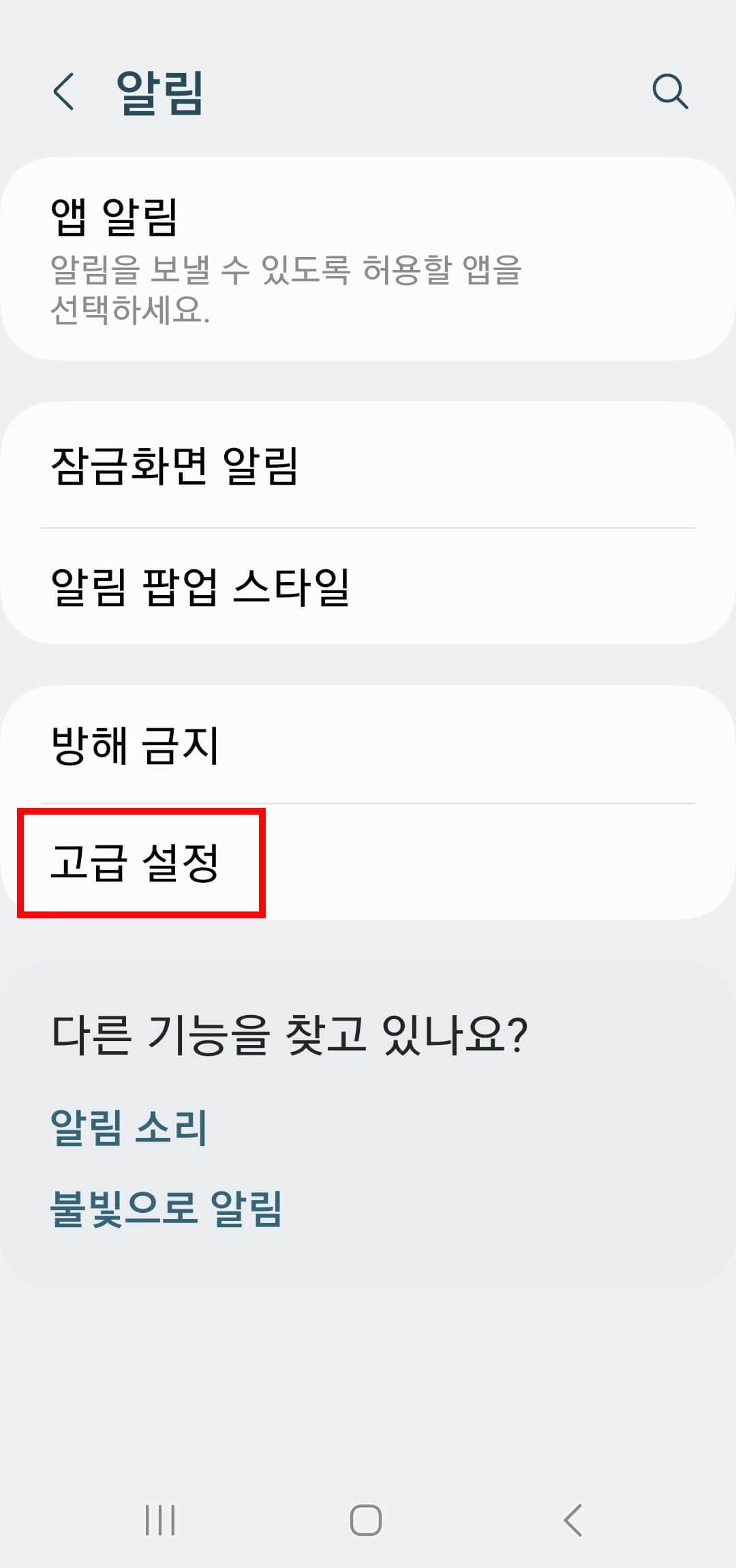 3. 알림의 하단에 고급설정을 클릭합니다.