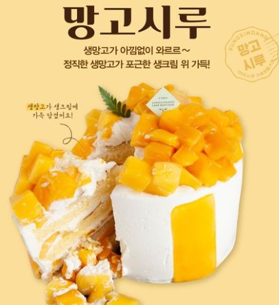 성심당은 계절 과일을 이용한 케이크도 유명한데요, 딸기를 듬뿍 넣은 딸기 시루를 끝내고 망고시루가 시작되었습니다. 케이크류는 케이크는 대전역점을 제외한 롯데점, DCC점 그리고 본점 옆의 케이크부띠끄에서 구매하실 수 있습니다.