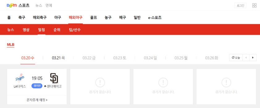 2024 메이저리그 서울 개막전 본경기에 대해서는 다음 스포츠에서 문자중계 예정이라고 합니다. 상황이 여의치 않다면 문자 중계로 관련 소식을 접하실 수 있습니다.