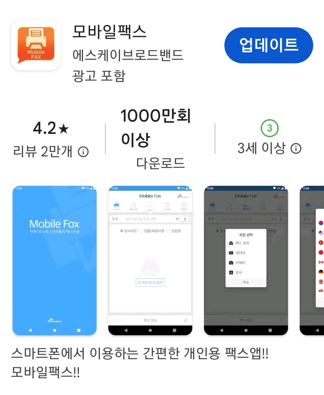 플레이스토어 혹은 애플스토어에서 <모바일 팩스>를 검색하여 설치합니다.