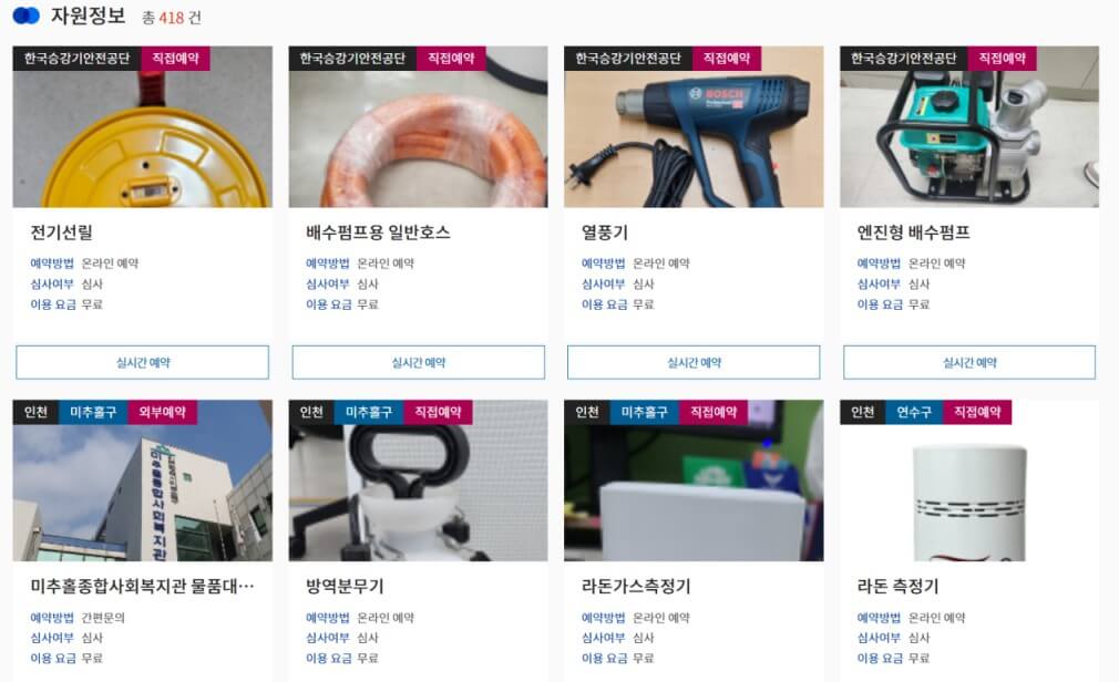전국의 무료 주차장, 며칠 사용할 휠체어 혹은 공구, 체육관, 회의실 등 전국의 공공시설을 함께 이용할 수 있는 서비스가 있어 소개합니다. '공유누리' 사이트는 전국의 공공자산과 시설 중 국민과 함께 사용할 수 있는 유무료 주차장, 회의실, 강의실, 연구실험장비와 공구, 휠체어 등을 공개하고 있습니다. 필요한 시설 혹은 장비와 지역을 선택하셔서 이용하실 수 있습니다.