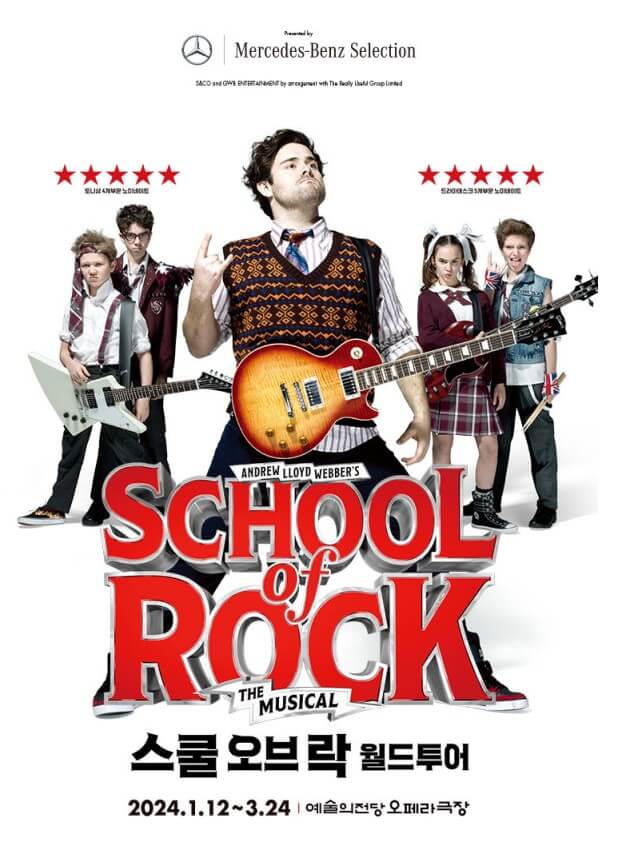 평균연령 11.5세의 천재적인 리틀 아티스트로 구성된 스쿨 오브 락 밴드의 폭발적인 라이브 무대, 700개의 조명, 200개 이상의 스피커.. 생각만 해도 스트레스가 확 풀릴 공연입니다. 남녀노소 모두 빠져들게 하는 마법 같은 시간을 누리시기 바랍니다.