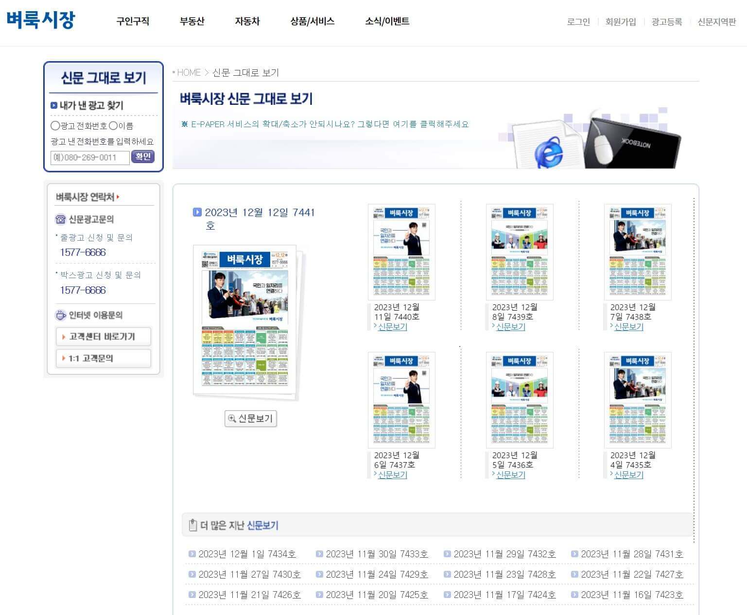스마트폰과 인터넷이 지금처럼 일반화되기 전 지역 정보의 일등공신은 벼룩시장이었습니다. 인터넷 정보가 활발해지면서 종이신문과 정보지가 많이 사라졌지만 사실 벼룩시장은 그대로 발행되고 있습니다. 다만 비용이 많이 드는 종이 출판을 줄여 찾아보기 힘든 것뿐인데요, 대신 휴대폰이나 PC로 종이 신문 그대로 볼 수 있습니다.
