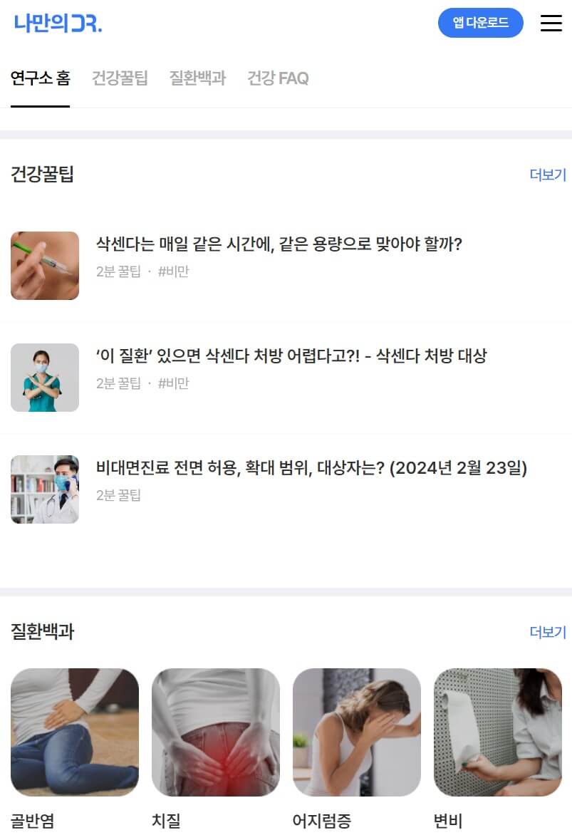 나만의 닥터 홈페이지에서도 건강꿀팁, 질환백과 등을 운영하고 있습니다.