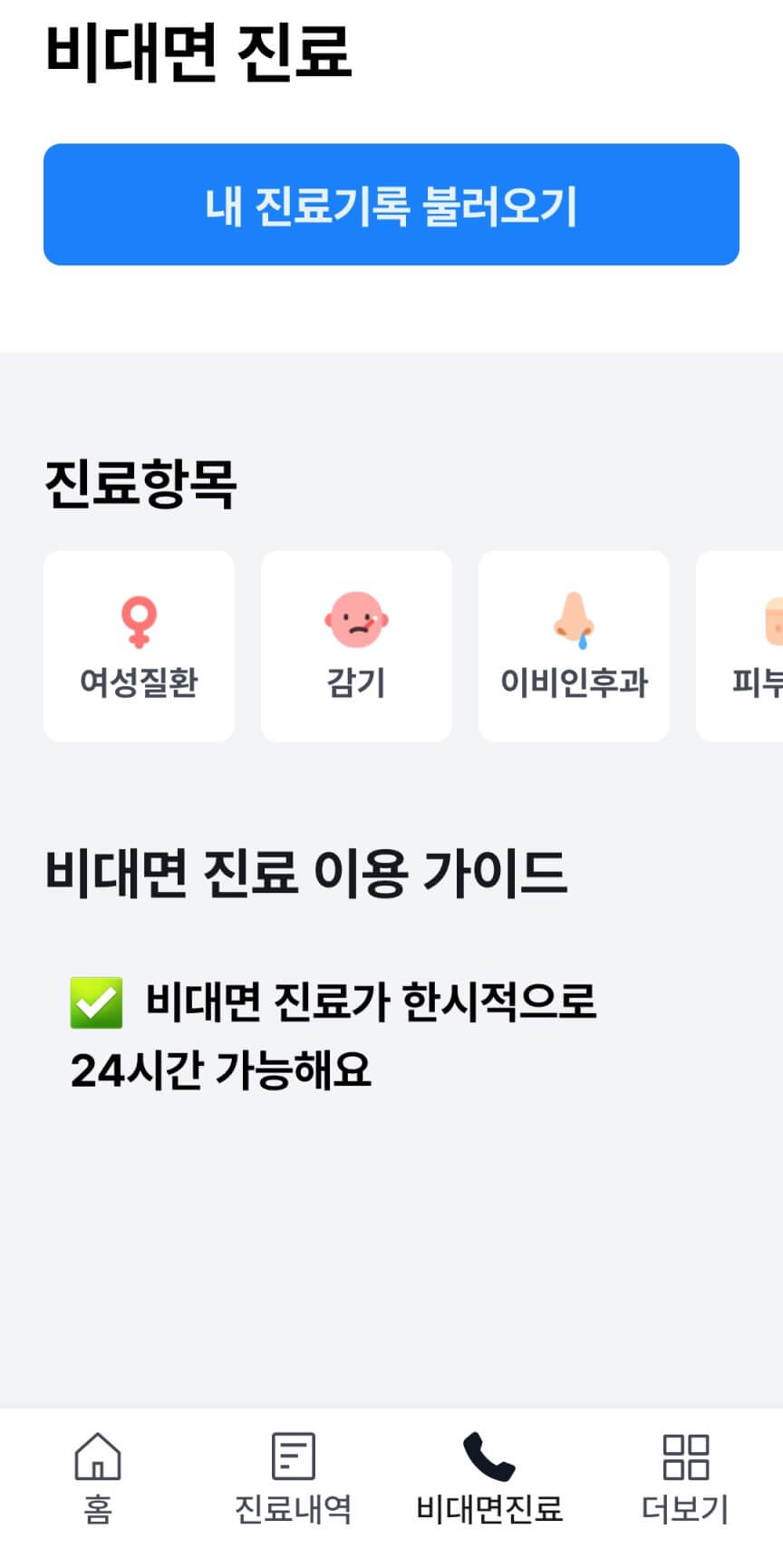 비대면진료는 어플을 이용하기 때문에 환자의 위치나 시간은 중요하지 않습니다. 24시간, 어디서든 진료가 가능한 의사나 병원을 주로 영상통화로 연결해 주기 때문입니다.