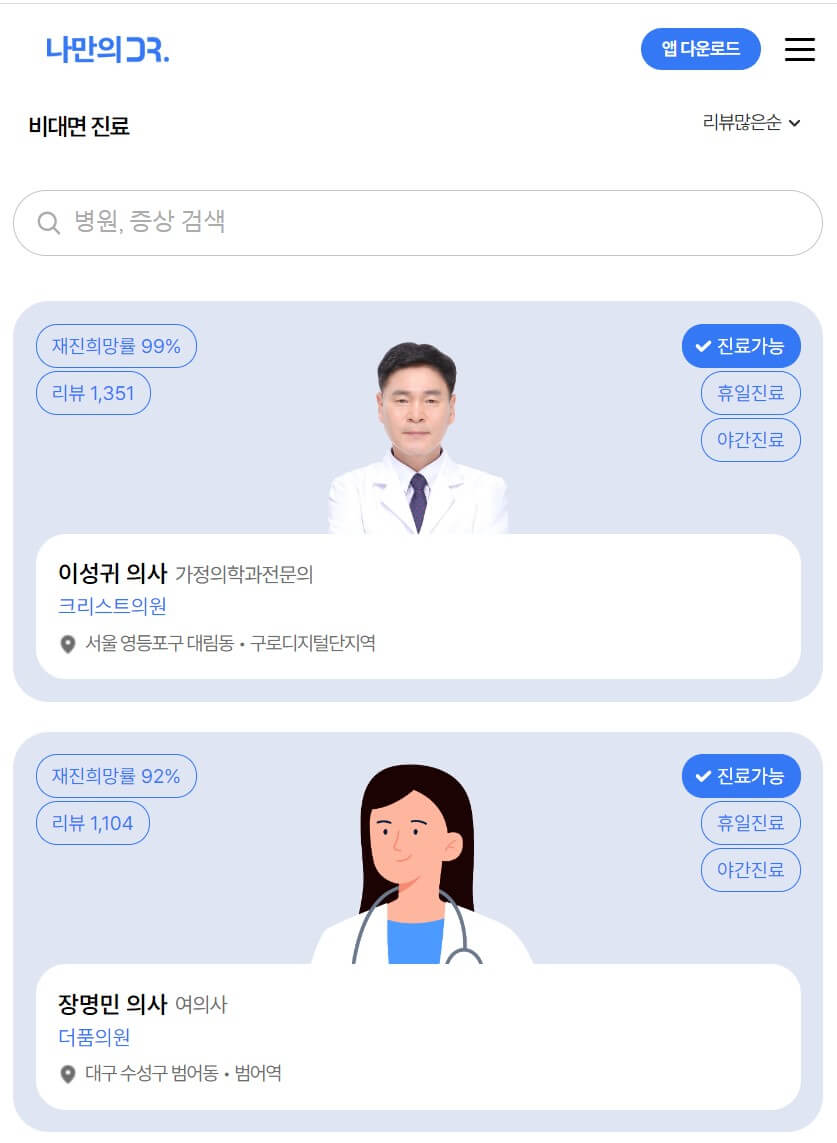 비대면 진료 어플 - 닥터나우, 나만의 닥터, 굿닥