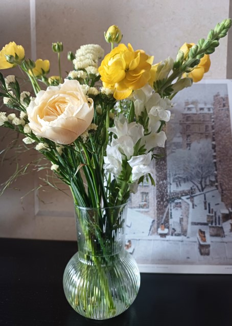 꽃병의 위치도 중요한데요, 직상광선은 피해 주세요. 햇볕을 받으면 꽃이 시들기 쉽기 때문입니다. 직사광선은 없되 환하고 환기가 잘 되는 시원한 곳에 놓아주세요. 온도가 너무 높은 시들거나 너무 빨리 꽃이 만개해버리기도 합니다.