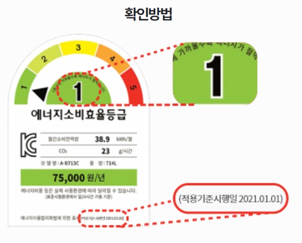 에너지 효율등급과 적용기준일은 제품에 부착된 라벨을 통해서 확인할 수 있으며, 라벨이 없는 제품은 신청이 불가합니다.