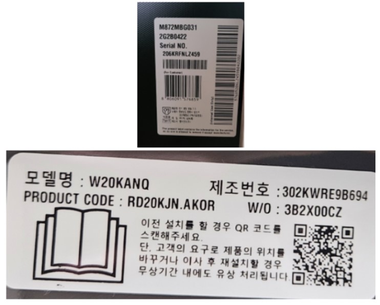 ● 제조번호(명판) - 제조번호 혹은 시리얼 넘버가 보이도록 촬영한 정면 사진. 빌트인 제품은 설치 후에는 제조번호가 보이지 않을 수 있으니 유의하시기 바랍니다.