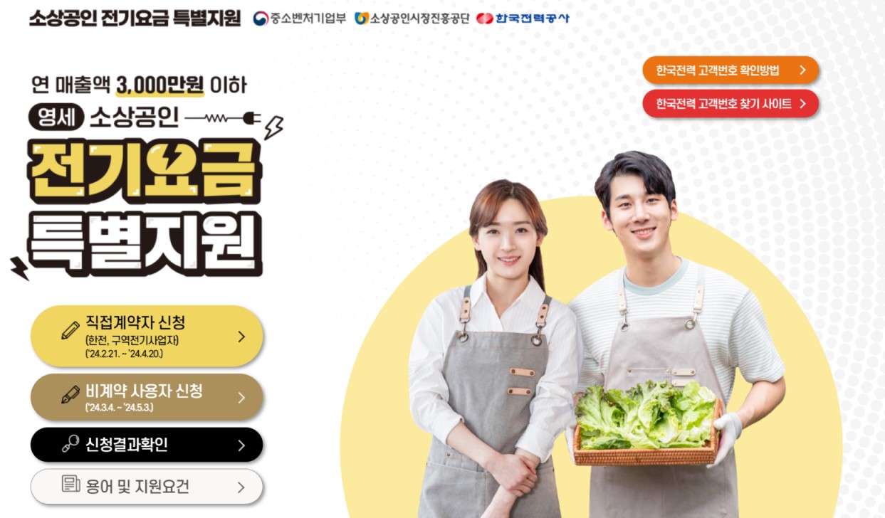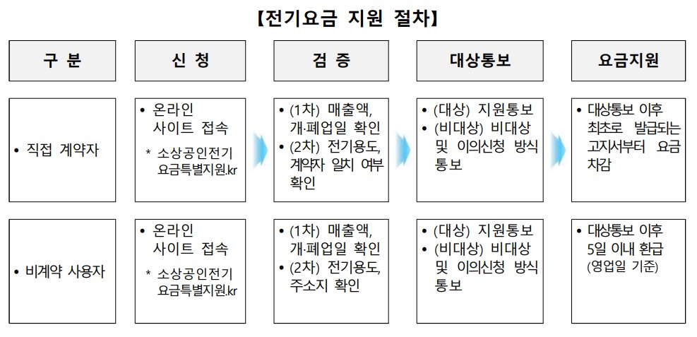 소상공인 전기요금 특별지원 유형별 신청방법