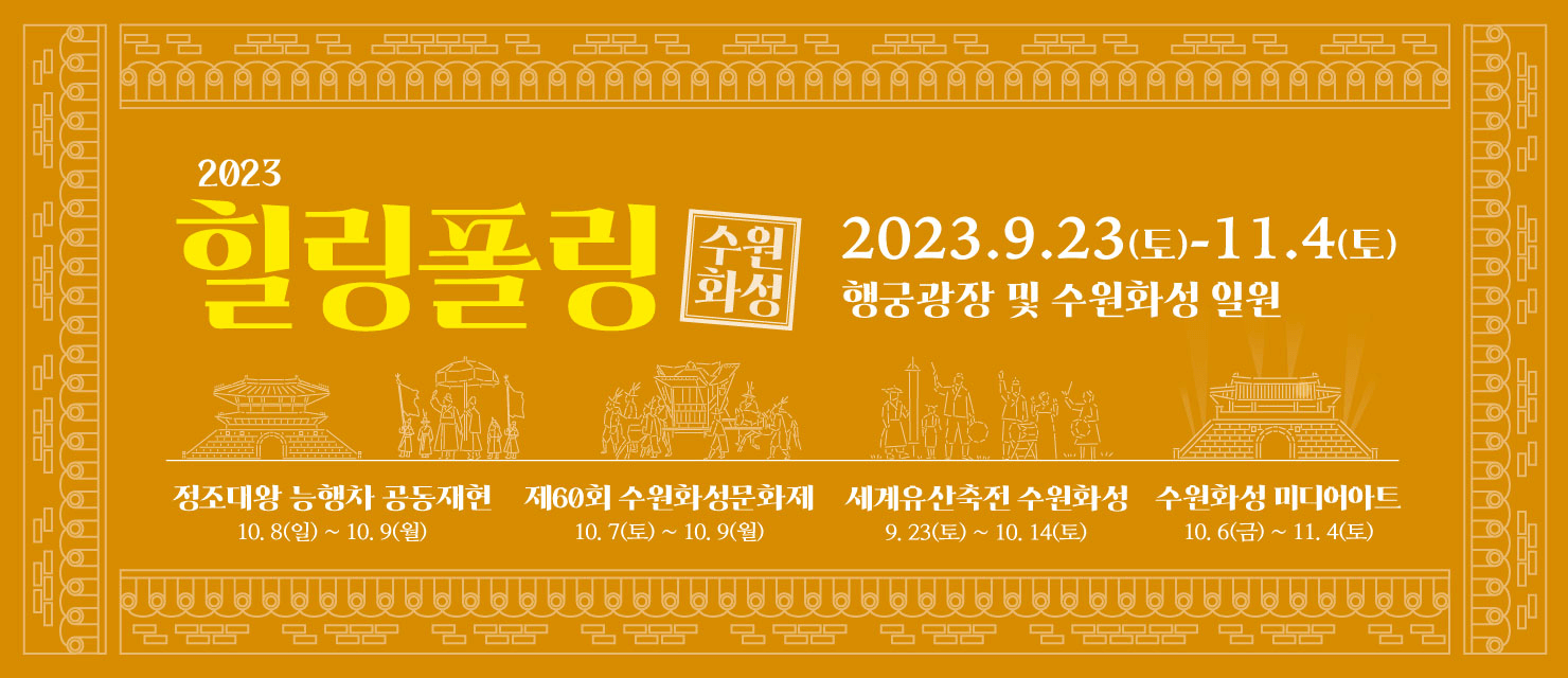 | 2023 세계유산축전 수원화성 - 의궤가 살아있다 | 9월 23일(토) ~ 10월 14일(토) |