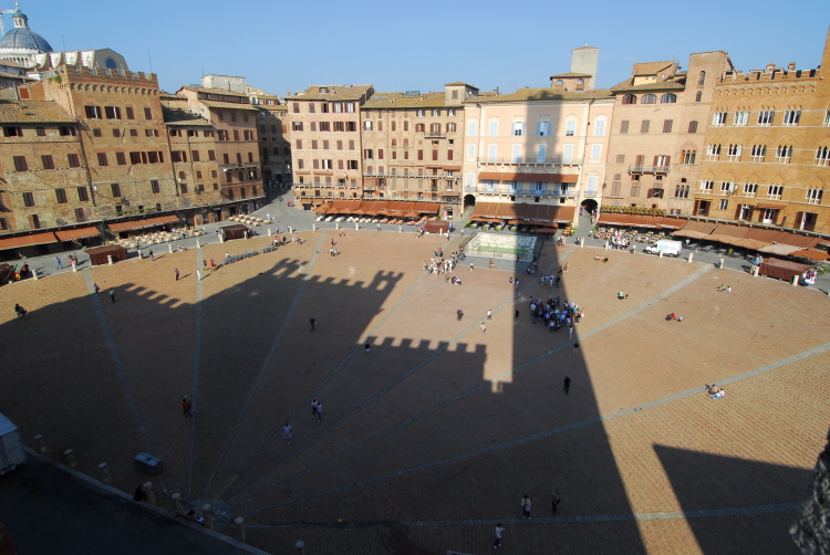 서로마 제국 멸망 후 이탈리아가 도시 국가의 길을 걷고 있었던 중세 시기, 시에나는 피렌체와 경쟁관계에 있던 강력한 도시 국가였다. 교통과 금융의 중심지이자, 성지 순례자들의 도시였지만 결국 피렌체에게 정복 당했다. 그 이후 이탈리아 통일 전까지 작은 도시로 남아있었던 덕에 지금까지 중세의 모습을 그대로 간직하게 되었다. 역사 지구의 미로 같은 골목길에서 부터 이런 모습을 확인할 수 있다. 시에나 역사 지구의 중심에는 팔리오 축제가 열리는 캄포 광장이 있다. 중세 광장 치고는 규모가 큰 편으로 전체적으로 조개 모양이며, 하얀 돌로 바닥을 9개의 부채꼴 모양으로 나누어 놓았다. 이는 중세 시대 9개의 의회를 나타내는 것이라고 한다. 광장을 둘러싼 건물들 중 102m높이의 만자탑이 있는데 500여개의 계단을 올라가면 전망대에 도착한다. 전망대에서는 캄포 광장에 있는 9개 부채꼴 모양을 더 확실히 볼 수 있고, 붉은 지붕으로 뒤덮인 시에나의 풍경과 멀리 토스카나 평원을 조망할 수 있다. 탑 옆의 푸블리코 궁전은 시청사로 이용되고 있다. 캄포 광장을 나와서 멀리 보이는 줄무늬 탑을 따라 걷다보면 시에나 대성당을 만날 수 있다. 시에나 대성당은 1229년에 착공하여 전쟁과 흑사병 등을 겪은 탓에 1380년에 비로소 완공되었다. 성당은 외부의 큰 탑처럼 내부에도 짙은 초록색 같은 검은색과 흰색의 대리석을 이용해 기둥을 줄무늬로 만들었는데, 이 줄무늬 기둥이 성당을 더욱 화려하고 돋보이게 한다. 색깔있는 대리석을 이용할 수 있는 시에나의 당시 재력도 짐작해 볼 만하다. 시에나는 순례자들의 도시답게 성인을 기리기 위해 지어진 성당이 많다. 대표적으로 프란체스코 수도회 창립자인 성 프란체스코를 기리는 프란체스코 성당, 도미니코 수도회의 창립자인 성 도미니코를 기리는 산 도미니코 성당이 있다. 하지만 무엇보다 중세 도시 시에나의 매력을 가장 잘 즐길 수 있는 방법은 거대한 저택과 중세의 건축물로 이루어진 골목길을 걷는 것이 아닐까.