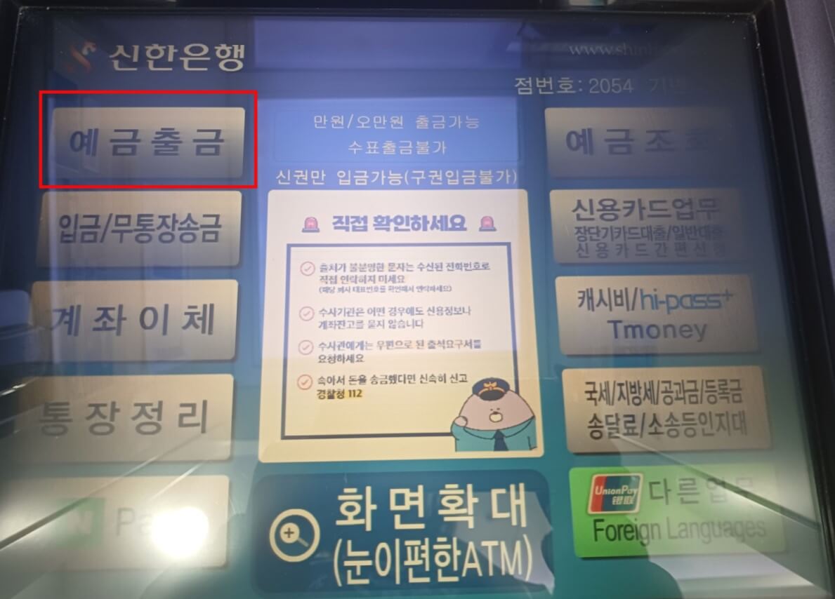 신한은행 ATM기로 갑니다. 타은행에서 타행서비스나, 편의점의 현금인출기는 불가합니다.