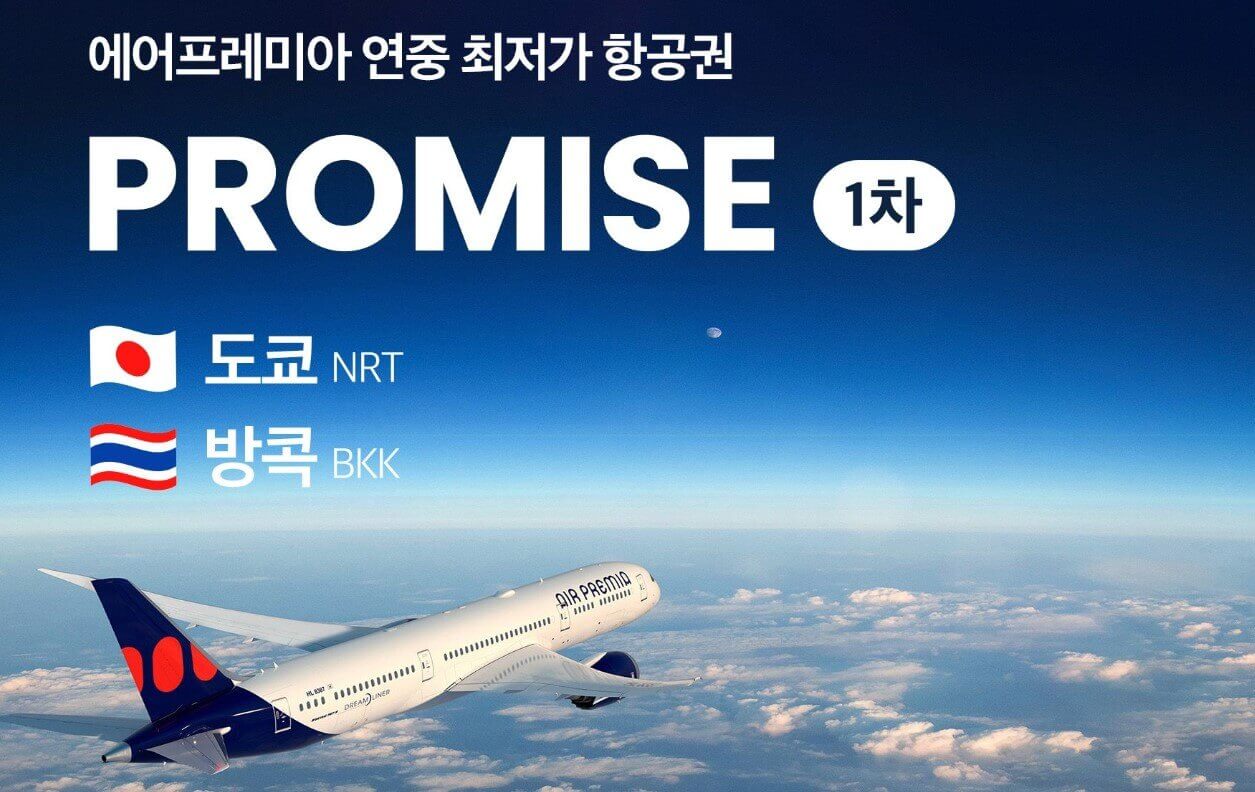 에어프레미아가 항공권 할인 이벤트 프로미스를 시작합니다. 이는 1년에 두 번 열리는 할인 프로모션으로 1차에는 도쿄와 방콕, 2차인 1월 29일에 LA, 뉴욕, 하와이, 샌프란시스코 노선을 할인된 가격으로 구입할 수 있습니다. 에어 프레미아는 불필요한 서비스를 제거한 후 합리적인 가격의 항공좌석을 판매하는 우리나라 국적의 저비용 항공사입니다.