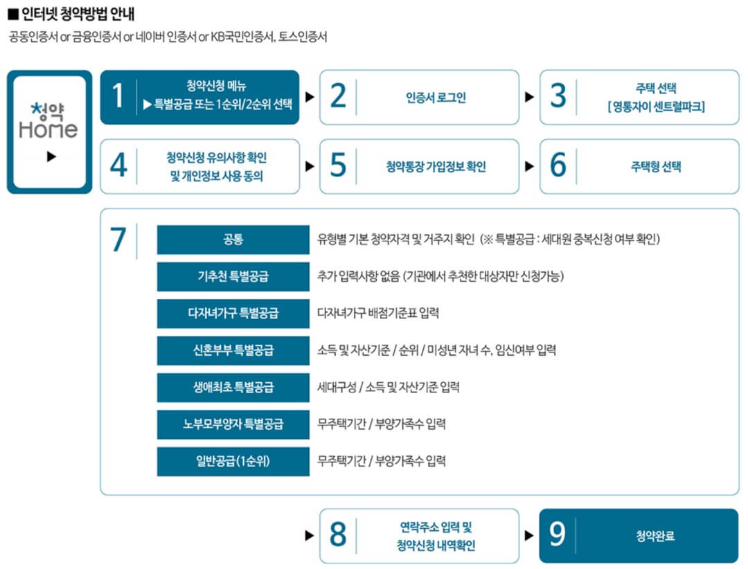 청약 자격 요건에 충족된다면 청약홈을 통해서 온라인 청약이 가능합니다. 청약홈의 온라인 청약을 위해서는 미리 금융인증서 등으로 등록을 하신 후 이용하실 수 있습니다. 청약 시작일에는 사용자가 많아 접속이 원활하지 않을 수 있으니 미리 등록하신 후 이용하시기 바랍니다. 또한 청약 마감은 17:30이니 가급적 오전에 신청하시는 것이 좋습니다.