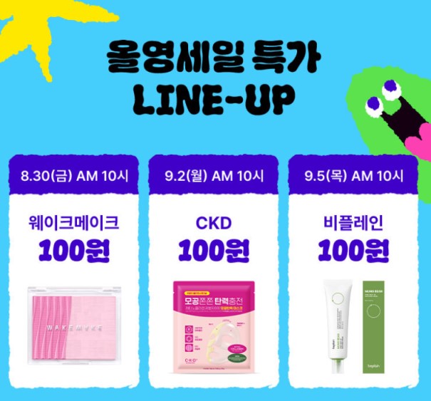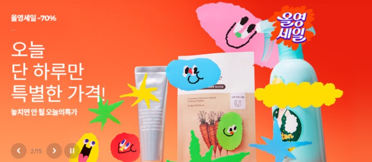 - 올영세일 : 1년에 4번, 4월, 6월, 9월, 12월의 초에 약 5-7일간 진행되는 세일 행사