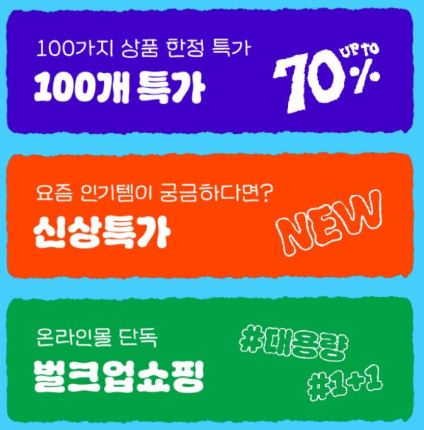 100원 상품도 주어지는데요, 다만 정해진 날짜와 시간에 접속하셔야 합니다. 100가지 상품에 대해 한정특가를 선보이는 코너 역시 올영세일 기간의 백미입니다. 평소 필요했던 물품을 미리 구매해 두셔도 좋을 것입니다.