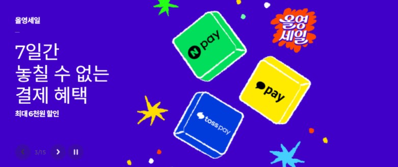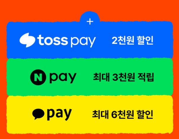 선착순 쿠폰 역시 매일 발급되므로 오늘 못 받았다면 내일 다시 도전해 보시기 바랍니다. 토스나 네이버 페이, 카카오 페이를 이용하실 경우에도 금액에 따라 할인 쿠폰이 주어집니다.