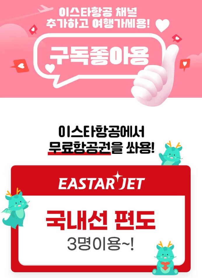 이스타항공의 공식 홈페이지 및 SNS(유튜브, 인스타, 카카오톡 채널)를 모두 추가하고 인증하면 추첨을 통해 3명에게 국내선 무료 항공권을 증정합니다.