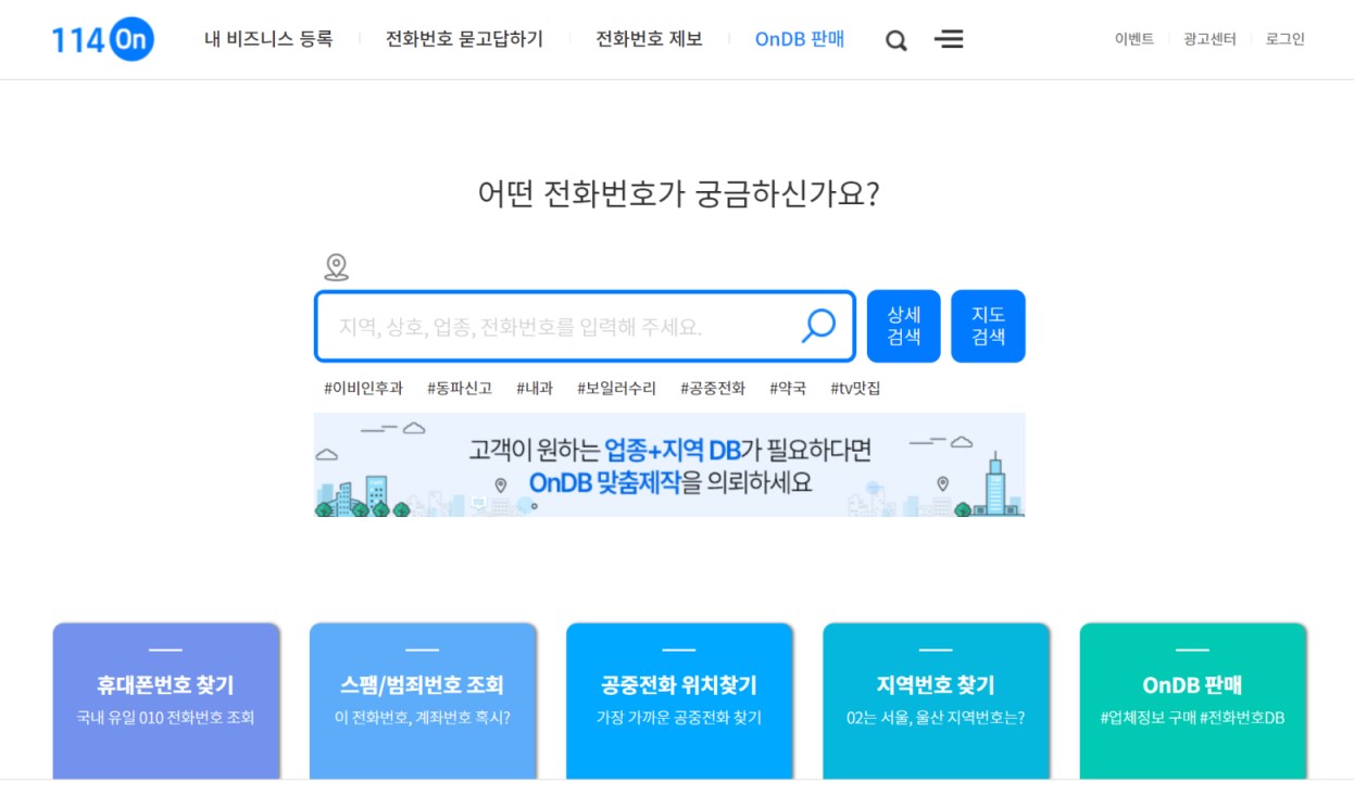인터넷이 활발하지 않던 시절 전화번호를 안내해 주던 곳이 114였는데요, 이 홈페이지에서도 전화번호로 주소 파악이 가능합니다.