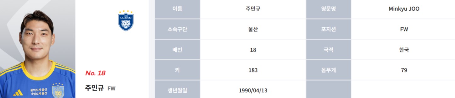 늦은 나이에 대표팀에 선발되었지만 활발한 움직임을 보여준 주민규 선수가 주목받고 있습니다. 주민규 선수는 현재 2023년부터 울산 HD FC 소속 공격수로 활동하고 있는데요, 울산 HD로 오기 전까지 제주, 서울 이랜드 등 K리그 1, 2부 리그에서 활약했습니다.