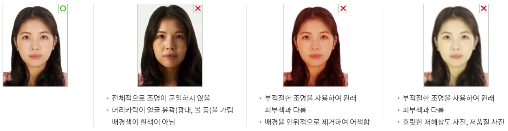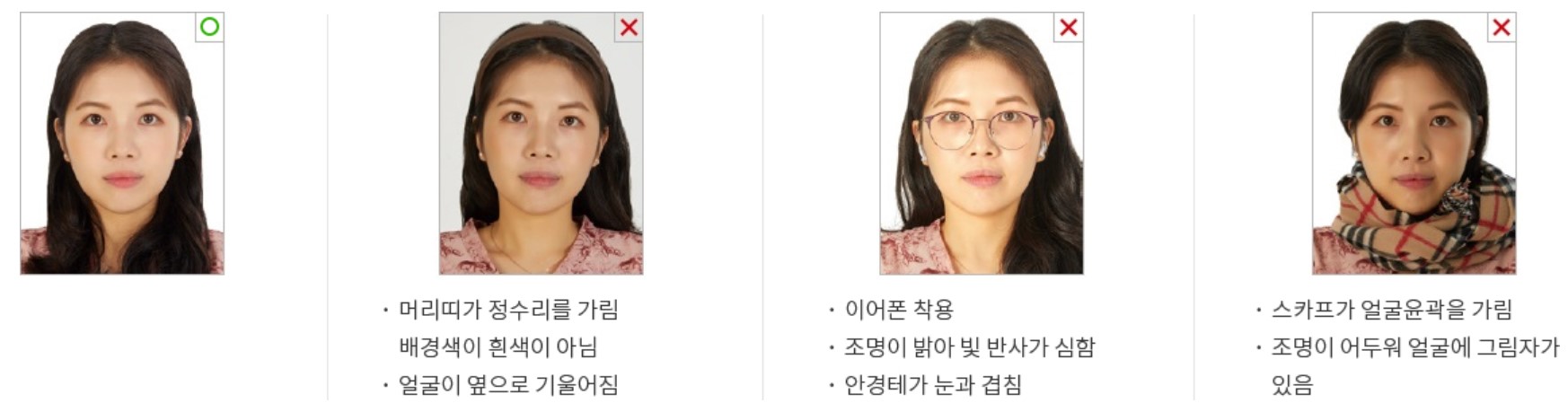● 모자나 스카프 등으로 머리를 가리는 사진은 불가합니다.