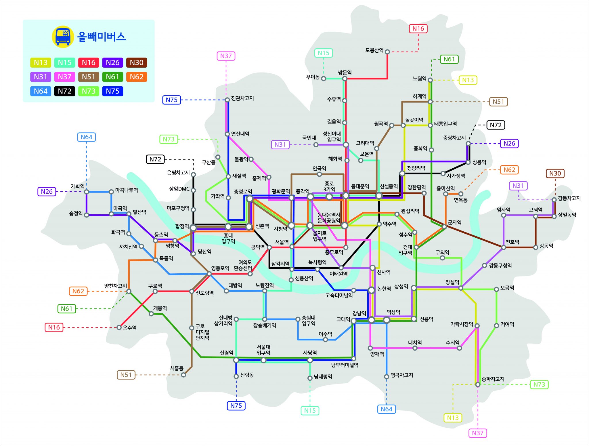 ▶ 심야 올빼미 버스 : 14개 노선 모두 정상 운행하며 23시 ~ 익일 오전 6시(노선별로 시간 상이)