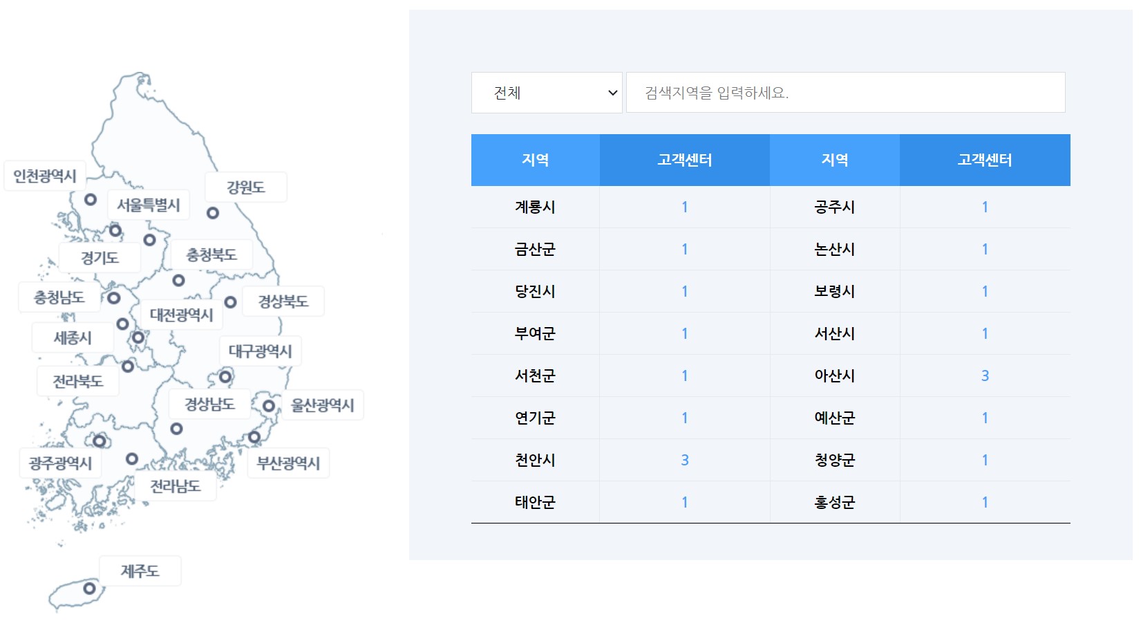 | 남부지사 | 1544-0041 | 부여군 |