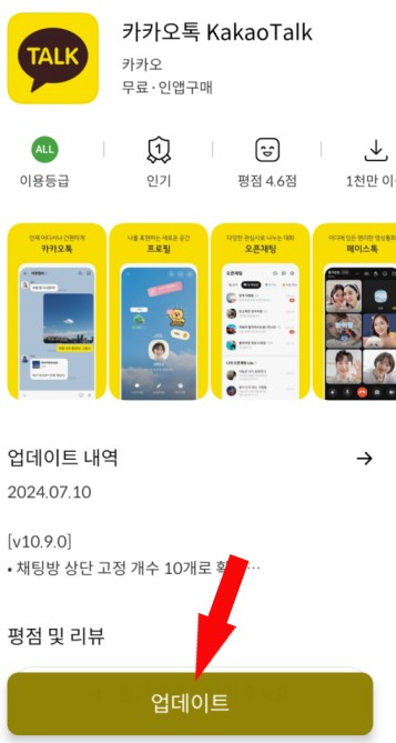 - 카카오톡에서 뜨는 업데이트 알림 메시지 클릭으로 업데이트 가능