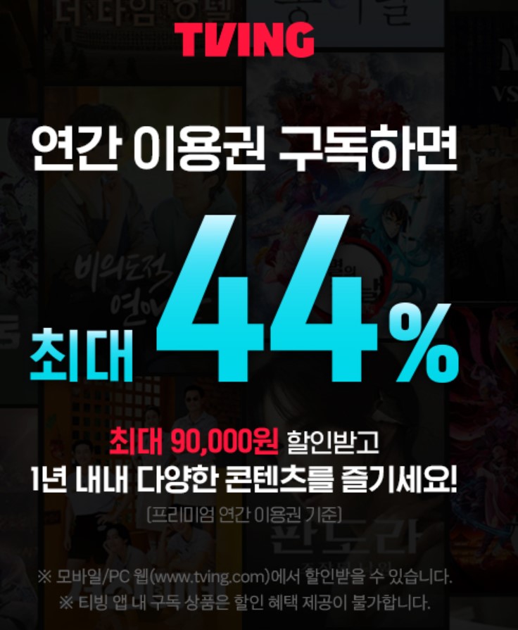 현재 티빙은 월간 이용권 금액으로 회원제를 구분합니다. 이를 연간으로 구입할 경우 할인이 가능합니다.