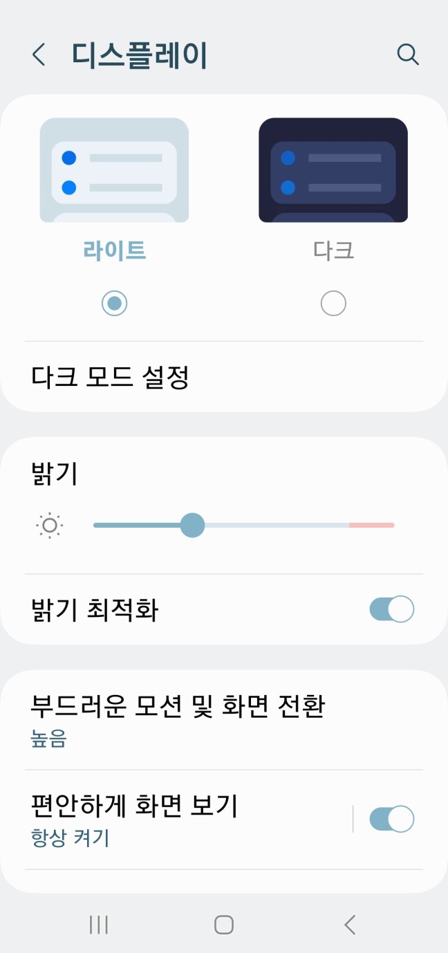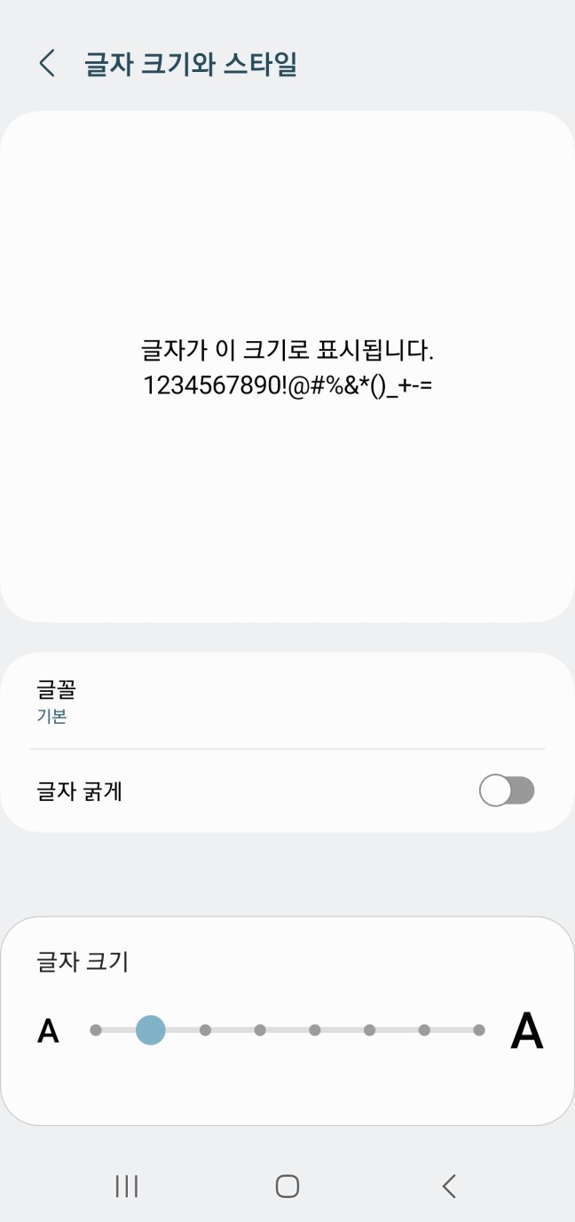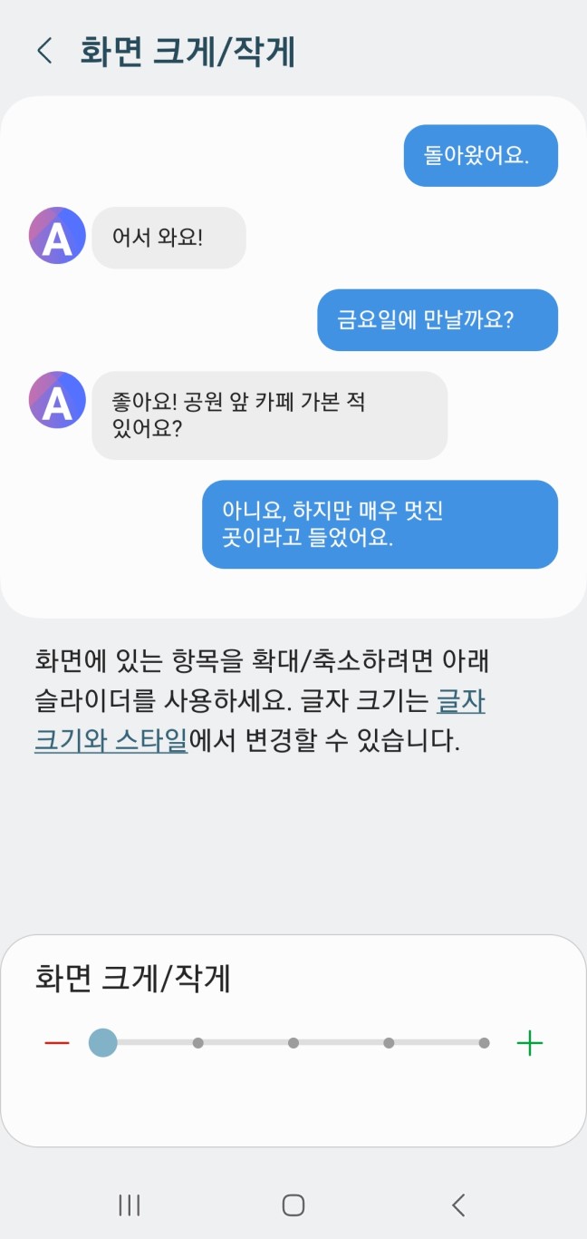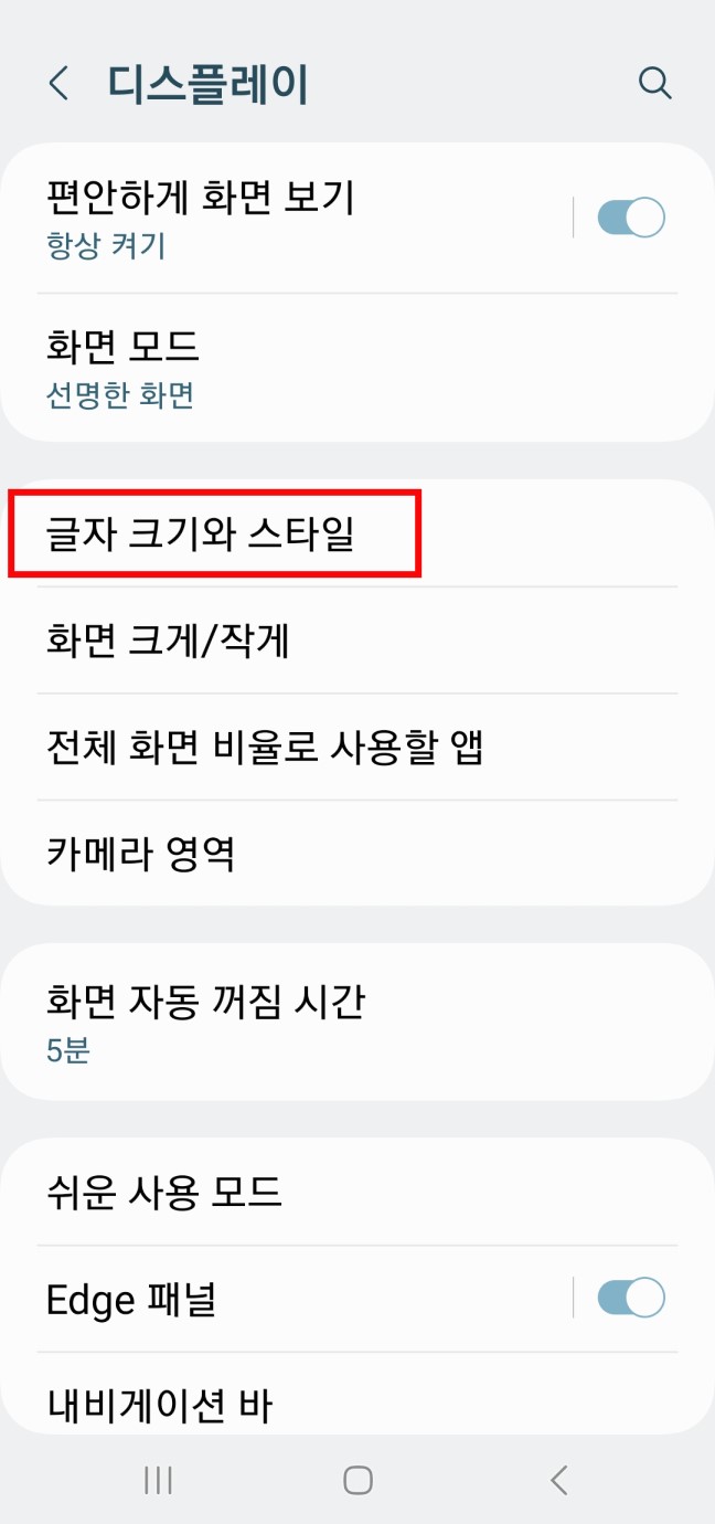 ● 설정 - 디스플레이 - 글자 크기와 스타일 & 화면 크게 / 작게