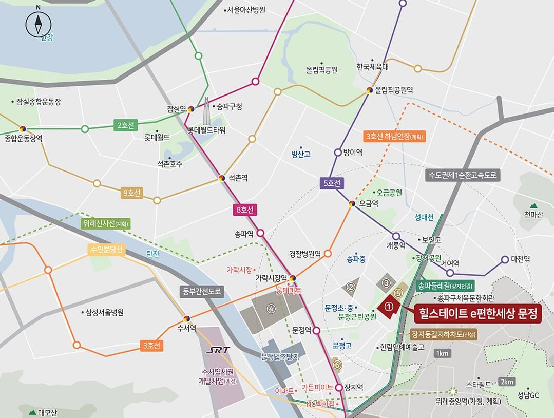 아파트는 입지라고 하는데요, 힐스테이트 이편한세상 문정이 자리한 곳은 학교, 교통, 생활 모두 만족할만한 위치에 있습니다.