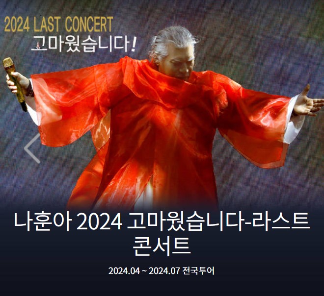 나훈아의 '2024 고마웠습니다-라스트 콘서트'는 현재 상반기 일정이 확정되었습니다. 지난 3월 19일(화) 오전 10시에 인천에서 열릴 콘서트 티켓 오픈이 시작되었는데요, 앞으로 청주, 울산, 창원, 천안, 원주, 전주 콘서트 티켓이 오픈을 기다리고 있습니다.