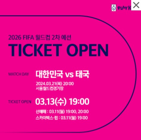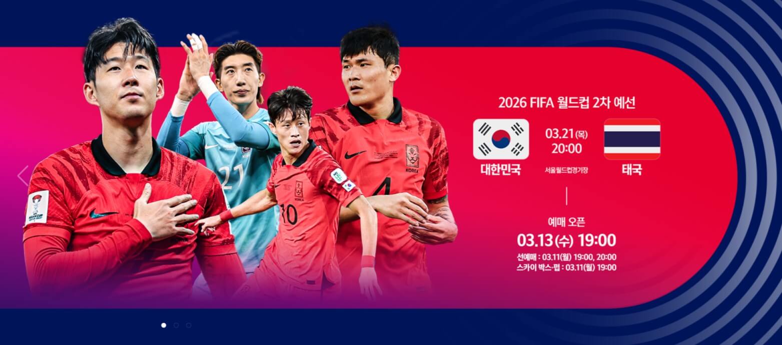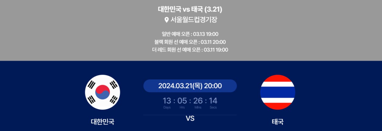 태국전 예매 - 3월 11일 VIP 회원 오픈, 13일 일반 오픈