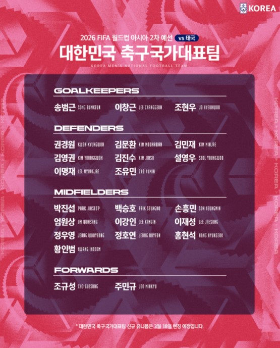 대한민국 대표팀 명단 발표 - 이강인, 손흥민, 조규성