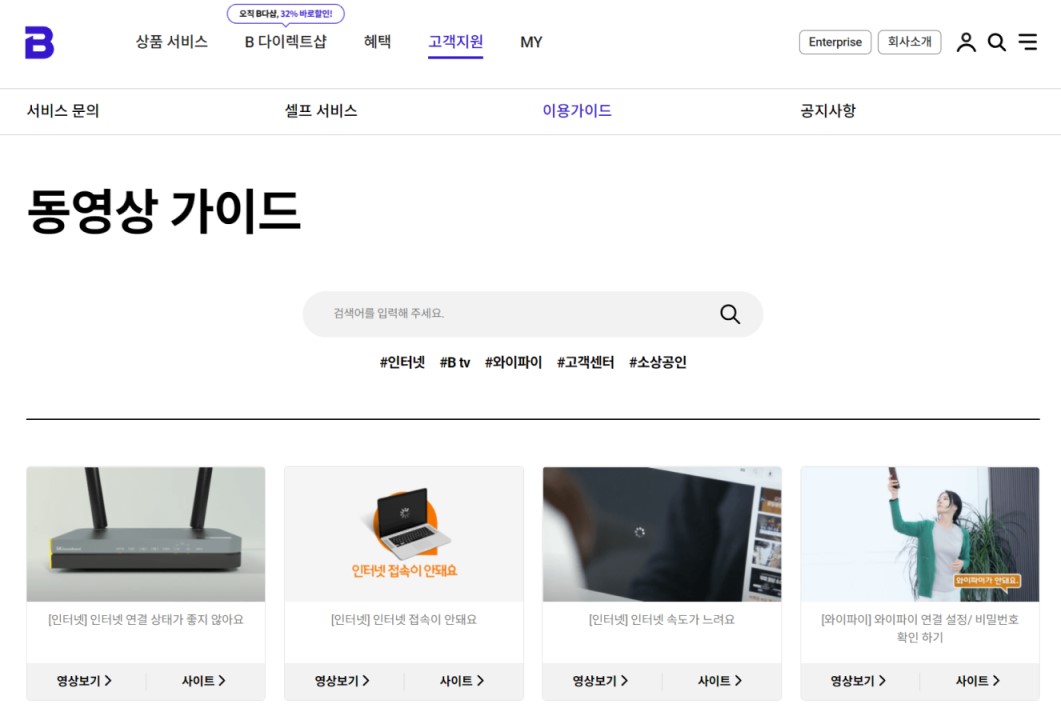인터넷 연결상태와 접속, BTV 문제, 선호채널, 연결문제, 리모컨 찾기 등 다양한 문제점을 동영상을 통해 해결할 수 있습니다.